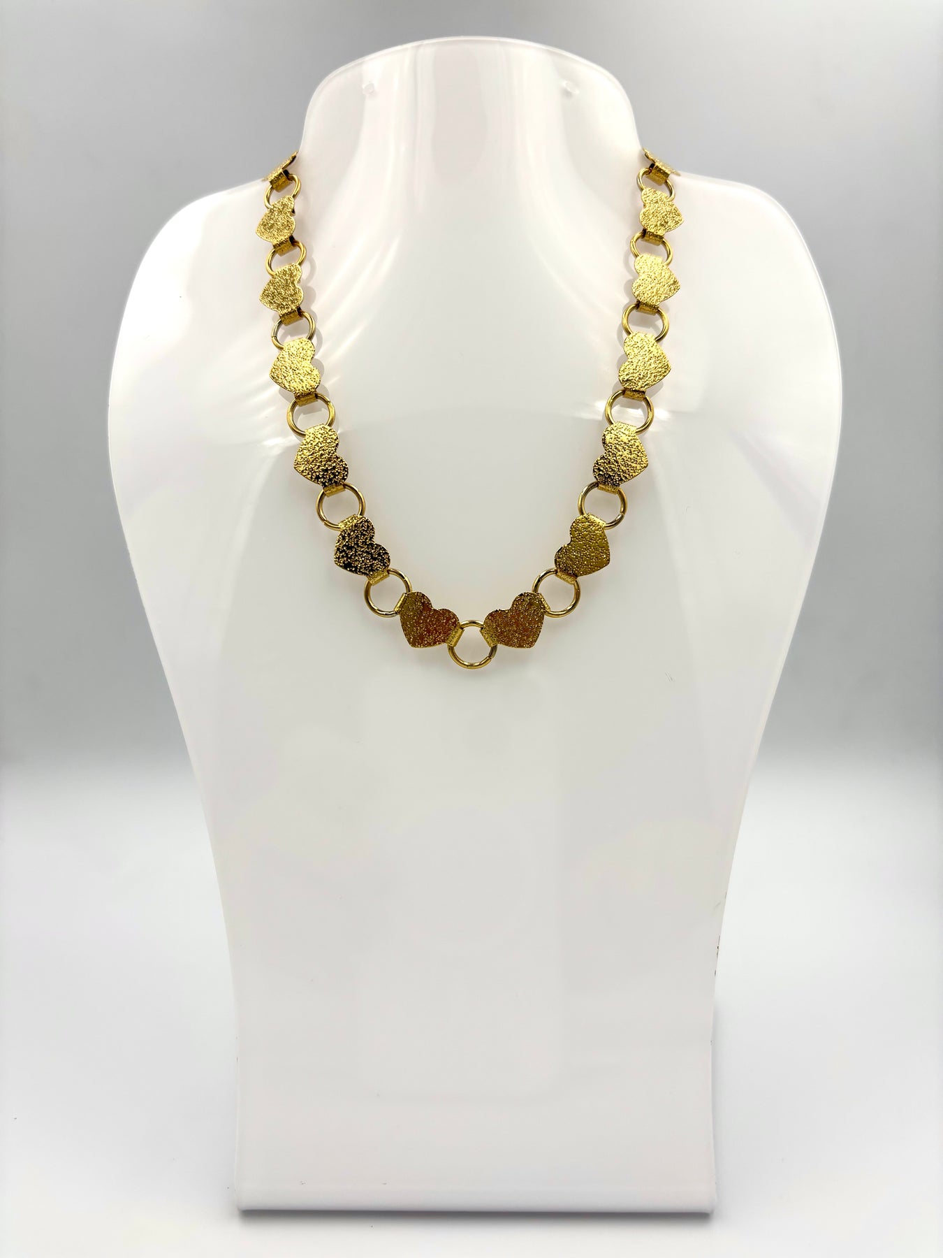 Κολιέ Χρυσηίδα από επιχρυσωμένο ατσάλι σε Σχήμα Καρδιάς και Χρυσούς Κρίκους. Απογειώστε το στυλ σας με το Κολιέ Χρυσηίδα, ένα κομψό και ρομαντικό κόσμημα που ξεχωρίζει. Το κολιέ συνδυάζει χρυσά στοιχεία σε σχήμα καρδιάς με λαμπερούς χρυσούς κρίκους, δημιουργώντας μια μοναδική, κομψή εμφάνιση που τραβάει τα βλέμματα.