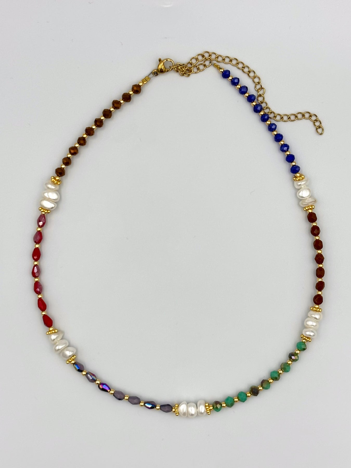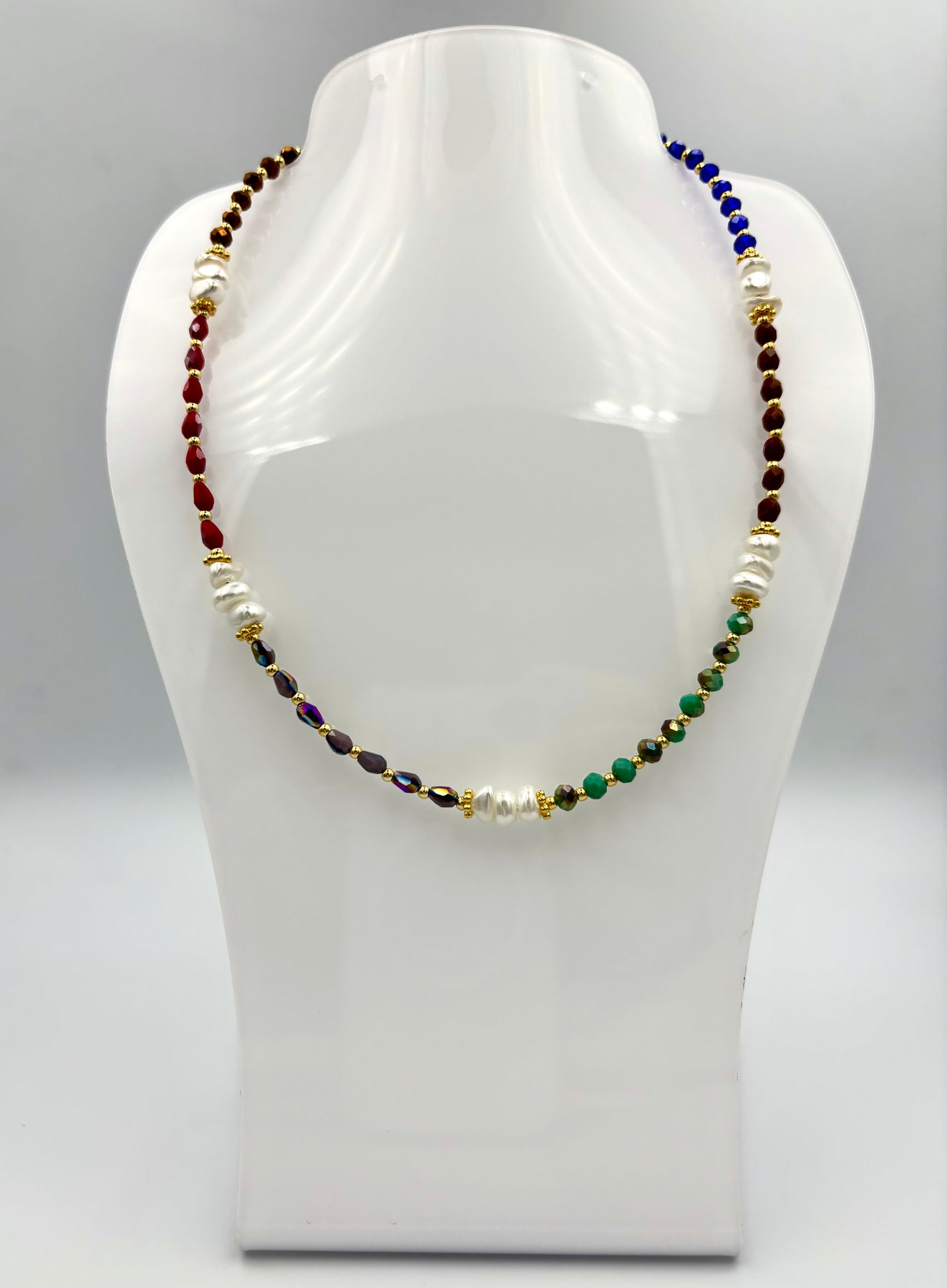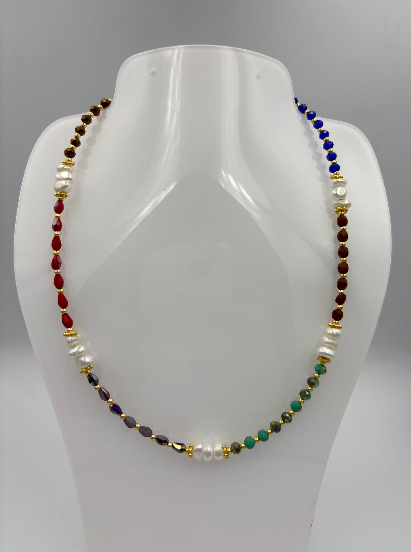 Η ανάμιξη των υλικών – κρυσταλλάκια, μαργαριτάκια και χρυσά στοιχεία – δημιουργεί ένα κομψό αποτέλεσμα, ιδανικό για να φορεθεί σε κάθε περίσταση. Το κολιέ Αρετή είναι ιδανικό για όσες θέλουν ένα κόσμημα που ξεχωρίζει.