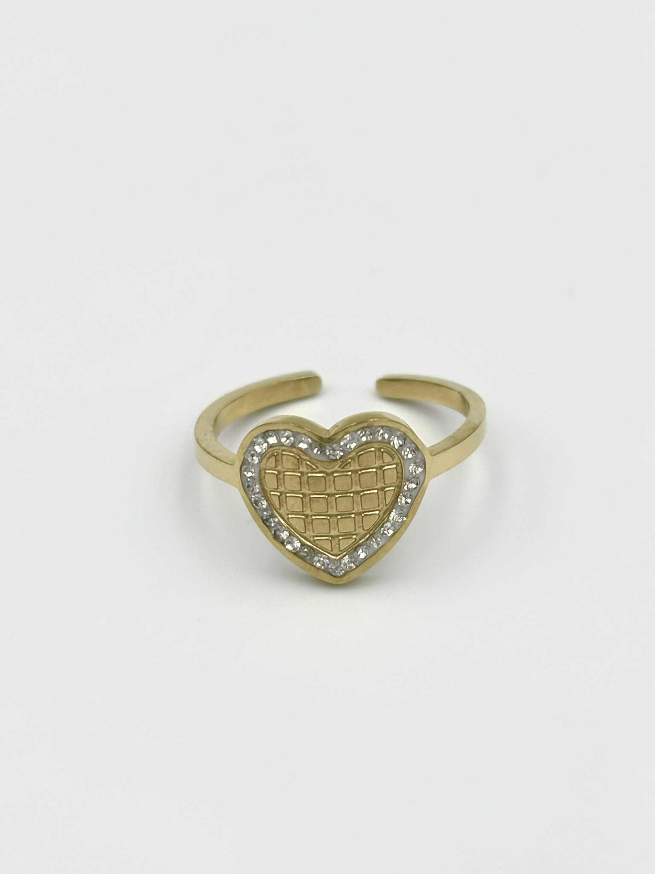 Δαχτυλίδι Χρυσάνθη επιχρυσωμένο ατσάλι σε Σχήμα Καρδιάς με Πέτρες Ζιργκόν. Αναδείξτε τη ρομαντική κομψότητα σας με το εντυπωσιακό Δαχτυλίδι Χρυσάνθη, ένα χρυσό κόσμημα σε σχήμα καρδιάς διακοσμημένο περιγραμματικά με λαμπερές πέτρες Ζιργκόν. Ο εκλεπτυσμένος σχεδιασμός του χαρίζει διακριτική πολυτέλεια και μοναδική λάμψη, καθιστώντας το ιδανική επιλογή για κάθε περίσταση.