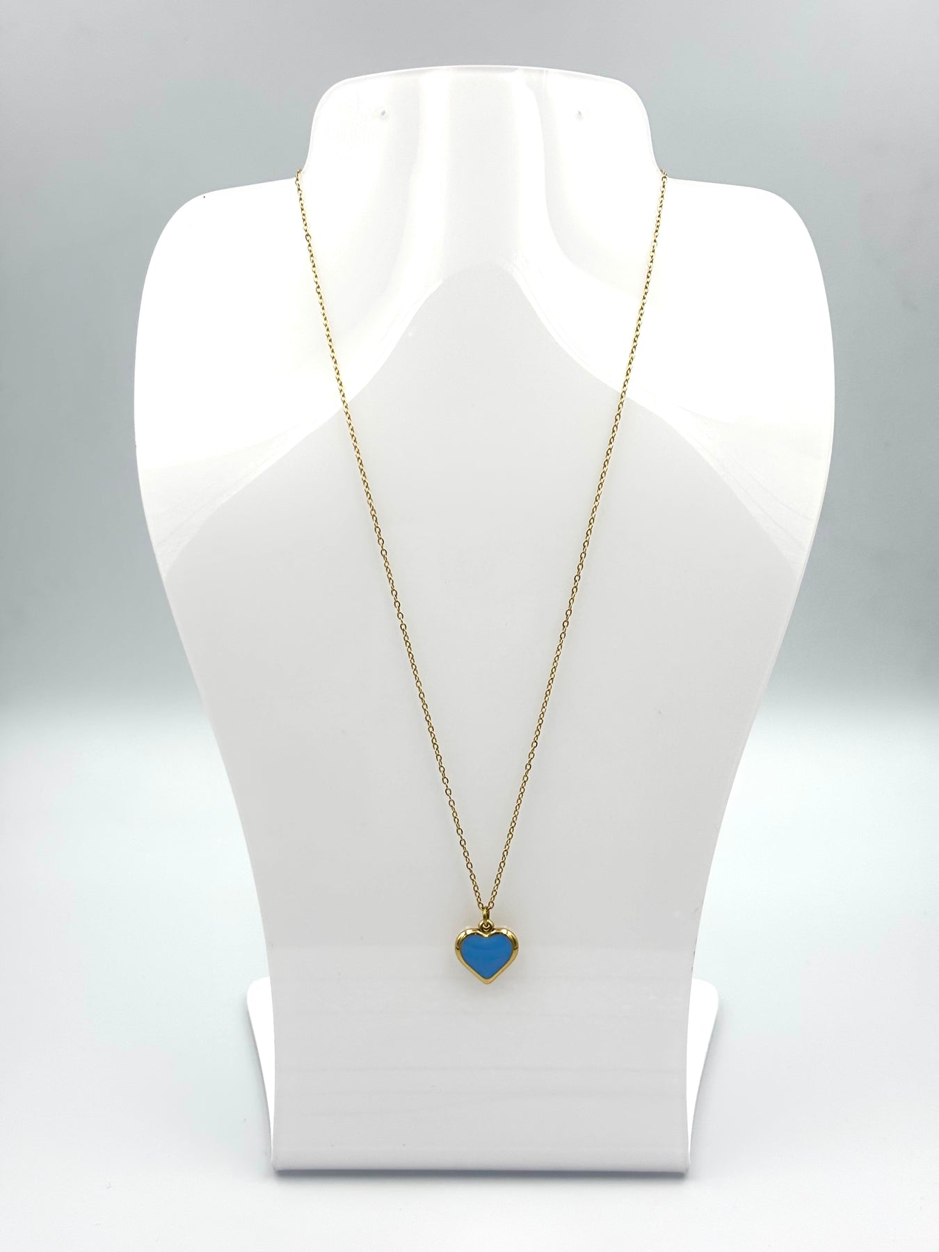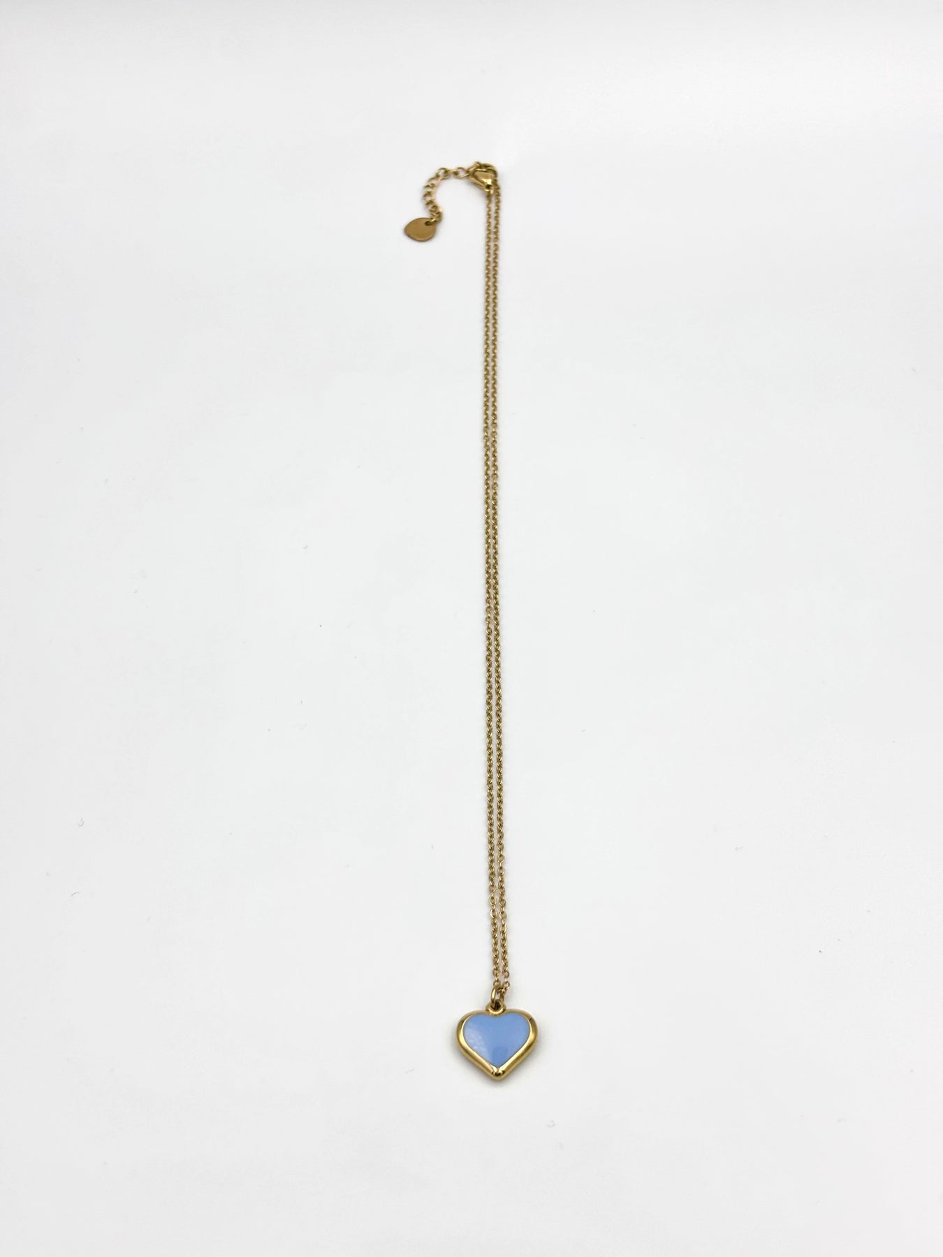 Κολιέ “Θάλλη” – Επιχρυσωμένο ατσάλι με καρδιά και γαλάζιο σμάλτο