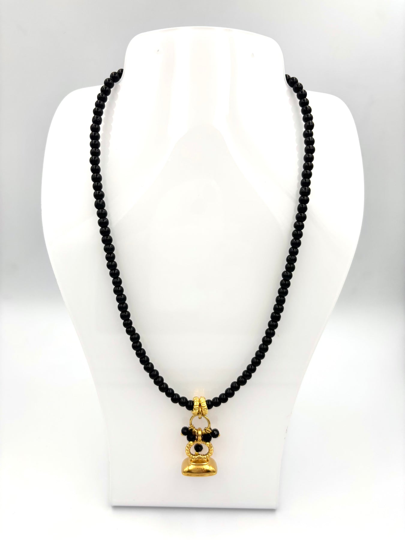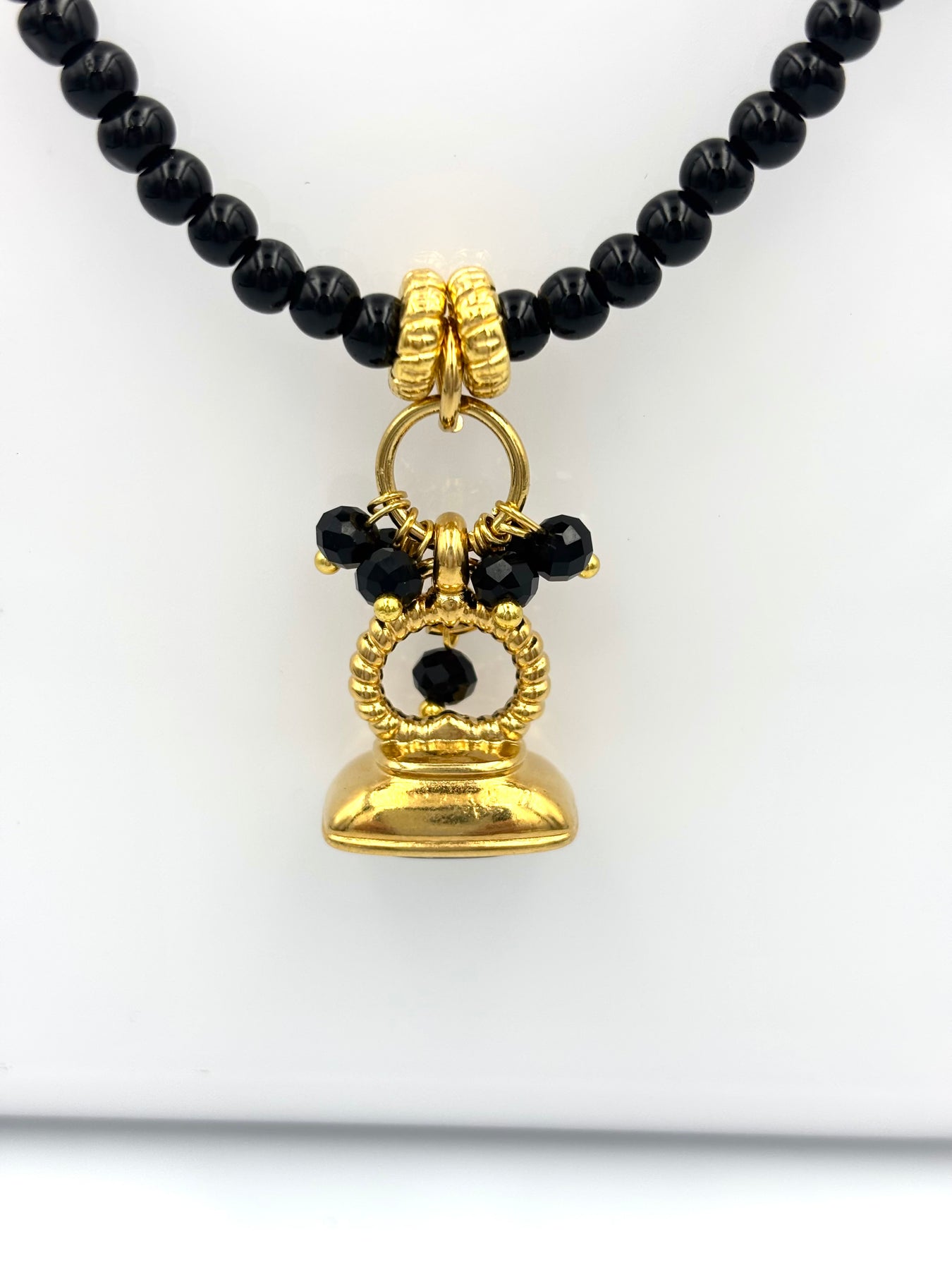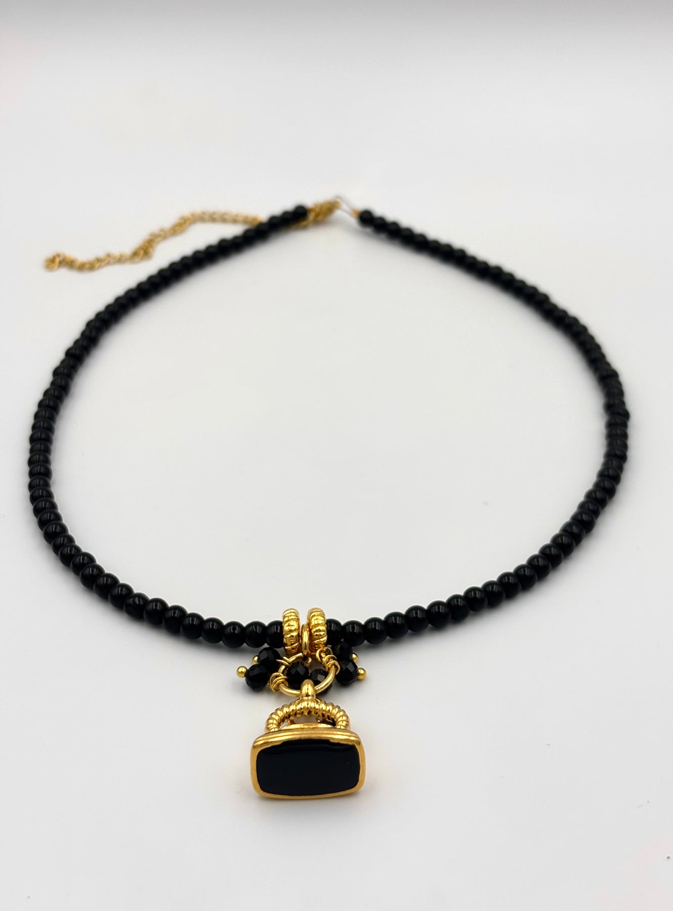 Υλικό: Μαύρες χάντρες & χρυσό μενταγιόν